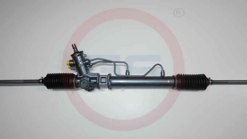 Гидравлическая рулевая рейка с не разборным корпусом золотника, вертикальным расположением штуцеров гидроцилиндра, расположением штуцеров вход/выход в сторону левой рулевой тяги и креплением под хомут. Koyo-SMI